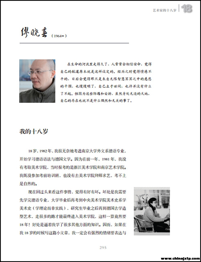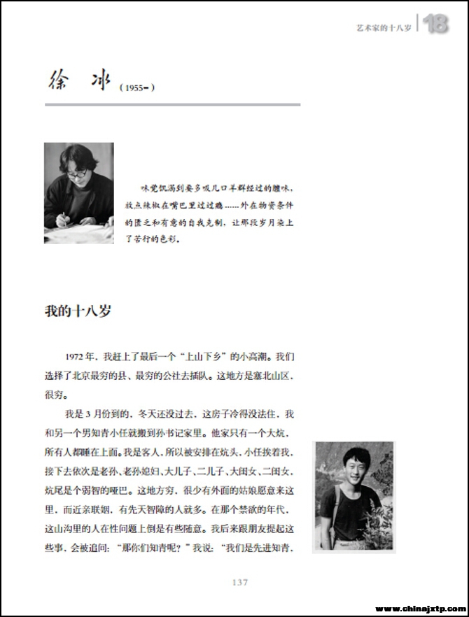 99 位中国最重要的艺术家回忆他们十八岁的故事。他们出生的时间跨度逾半个世纪(出生时间1918-1982),置身的时代背景大不相同。十八岁正好是人生一个过渡性的时段,因为还未跨入社会,还未被世界浸染得失去原来的颜色,但是体验人生和观看世界的方式却是大局已定。这是艺术家的个人断代史,也是时代的变迁史。其中有艺术家