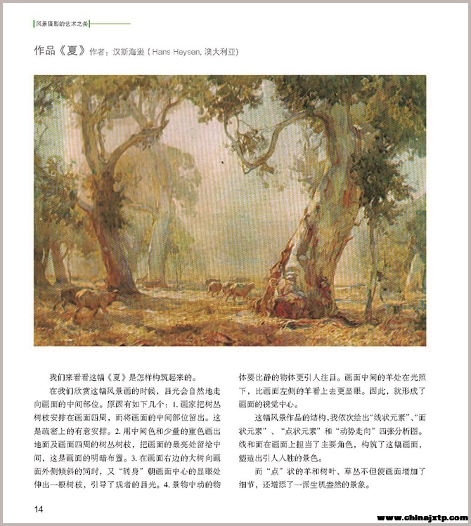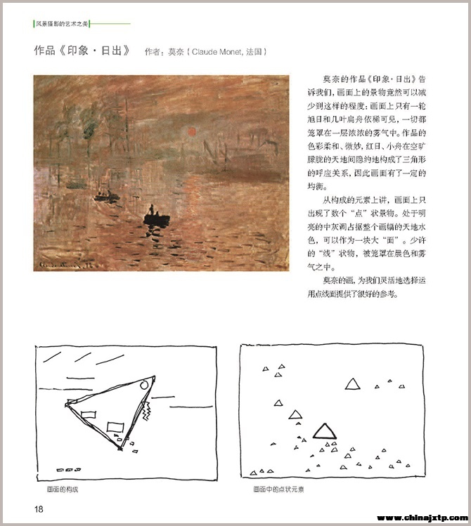 《风景摄影的艺术之美》是一本摄影指导书。书中前两个章节通过经典绘画作品来讲解画面的构成原理和构成元素,指导读者对画面进行分析。当对画面构成的基本元素有了一定的了解,看懂了风景,有了“体悟”,就知道怎样去取舍,怎样去拍摄。作者以其对绘画和摄影的研究,解剖了大量经典画作和摄影作品,帮助读者了解到一景一物的走向、动势,及其在画面构成中所起的作用,让你走入风景摄影的艺术创作领域。书中的第三章还介绍了在荒蛮之地惊险刺激的拍摄经历。在第四章,作者重点介绍了照片后期制作中如何进行再创造,使之成为艺术品的尝试,开辟有修饰和美化篇、改编和脱胎篇、重现和虚